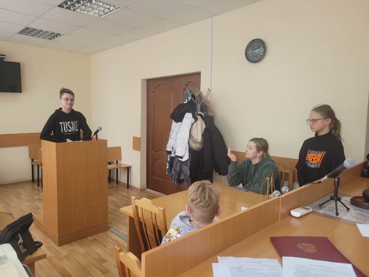 Школьники активно включились в игру: прокурор Екатерина зачитывала и поддерживала обвинительное заключение, а адвокат Семён, учитывая признание вины, просил для своего подзащитного минимально возможное наказание.