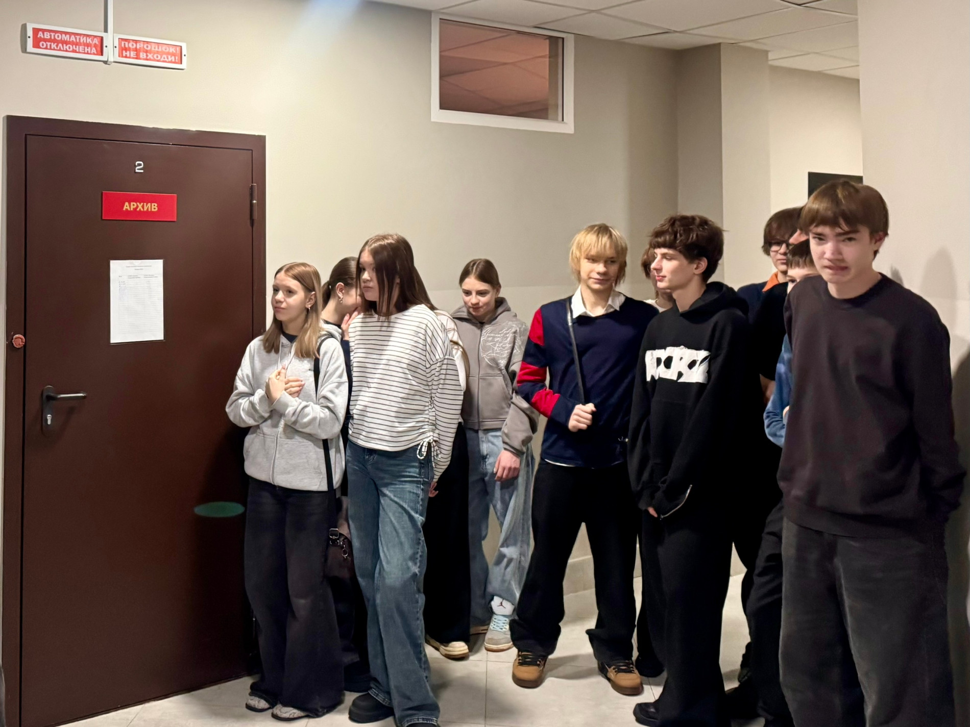 Встреча получилась очень живой и насыщенной. Ребята не просто прошли по коридорам здания, а заглянули в его служебные «уголки»: увидели, где хранятся архивные дела, побывали в конвойном помещении. Надежда Олеговна Соколова, консультант общего отдела, так увлекательно рассказала о том, как бережно хранится история каждого судебного дела, что многие засыпали её вопросами.