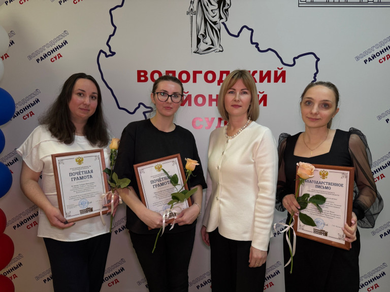 - Куликова Татьяна Николаевна, секретарь судебного заседания отдела обеспечения судопроизводства, награждена Почетной грамотой председателя Вологодского районного суда Вологодской области.