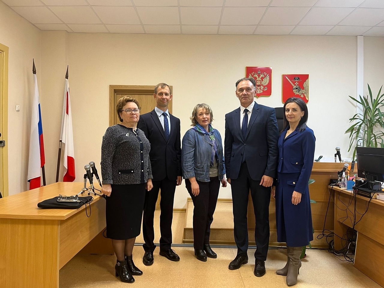 В продолжение рабочей встречи председатель Вологодского областного суда Игорь Эдуардович Трофимов, заместитель председателя Вологодского областного суда Ольга Алексеевна Федосеева и начальник Управления судебного департамента в Вологодской области Любовь Юрьевна Овцина посетили Череповецкий городской суд.