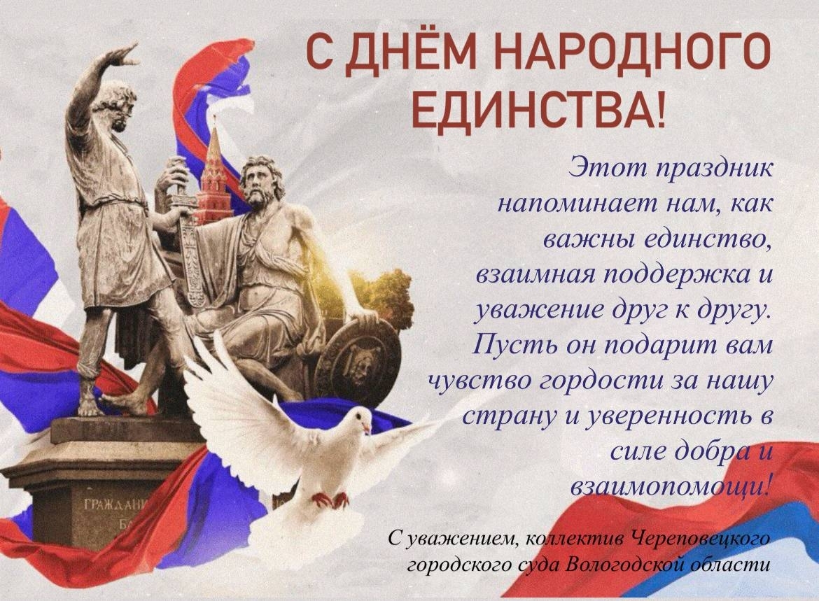 6.11.2025 Поздравление с Днем народного единства от коллектива Череповецкого городского суда. #суды35регион_мероприятия #суды35регион_Череповецкий_городской_суд #суды35регион_ОПС Оставьте комментарий Ваше ФИО Комментарий