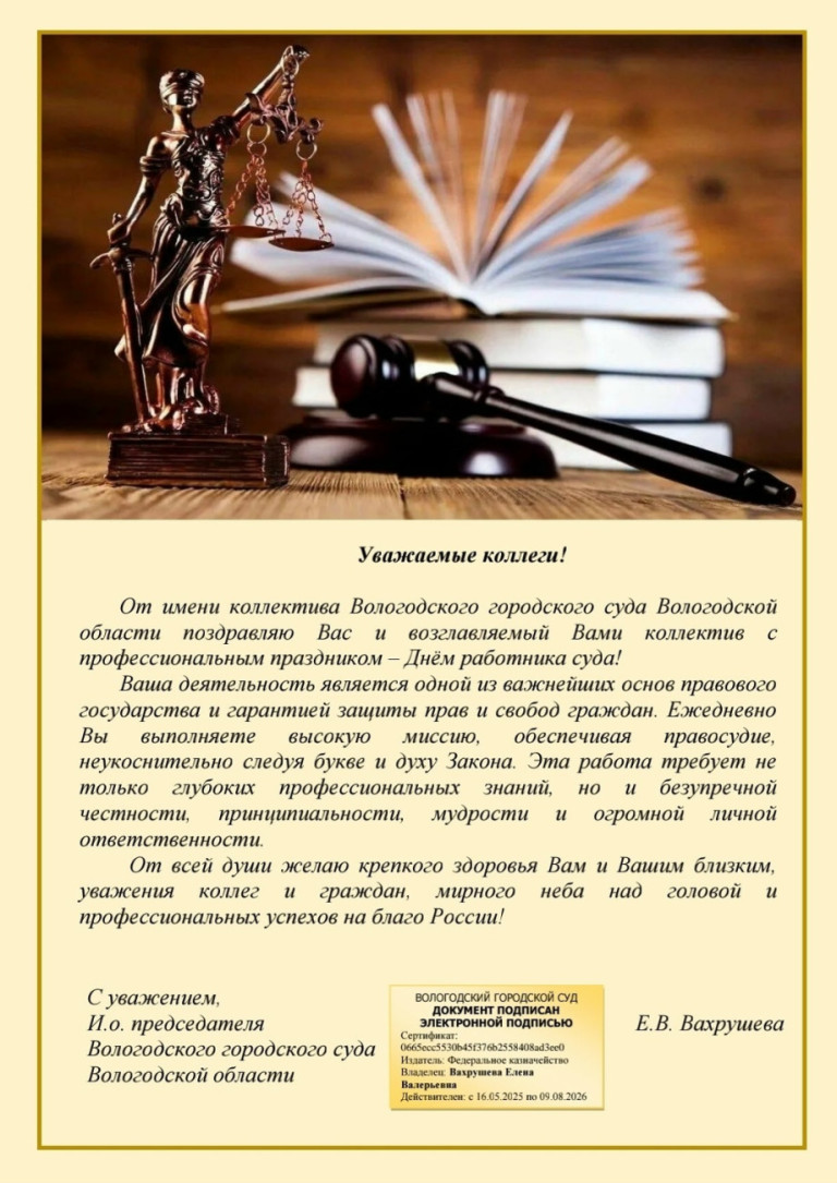 6.11.2025 Поздравление с Днем работника судебной системы от коллектива Вологодского городского суда. #суды35регион_мероприятия #суды35регион_Вологодский_городской_суд #суды35регион_ОПС Оставьте комментарий Ваше ФИО Комментарий