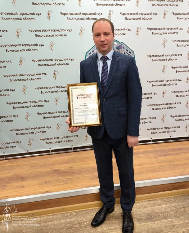 Почетной грамотой Совета судей Вологодской области награжден заместитель председателя Череповецкого городского суда Горев Алексей Андреевич.