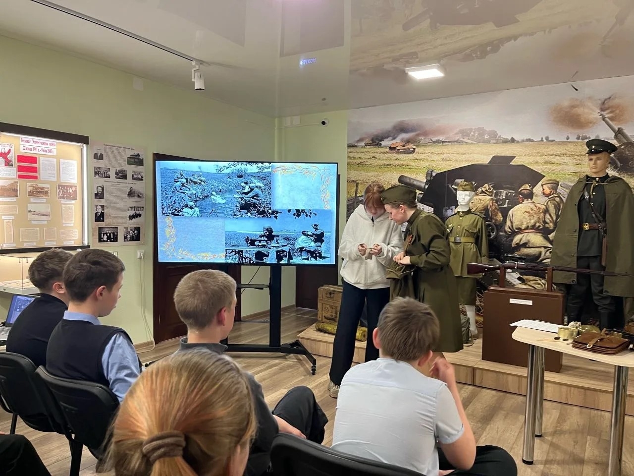 В ходе экскурсии ребята познакомились с подлинными экспонатами эпохи Великой Отечественной войны: предметами солдатского обихода; военной формой и снаряжением; письмами с фронта; бытовыми вещами, использовавшимися в тылу и на передовой; архивными фотографиями и документами.