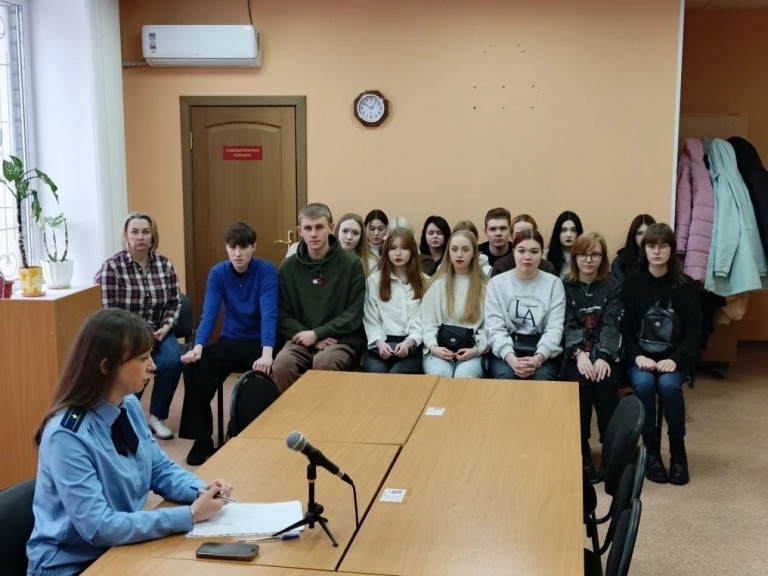 В рамках региональной программы «Знакомьтесь: судебная система Вологодской области» 10 марта 2026 г. Череповецкий районный суд Вологодской области посетили студенты БПОУ ВО «Череповецкий лесомеханический техникум им. В.П. Чкалова», обучающиеся по специальности «Юриспруденция».
