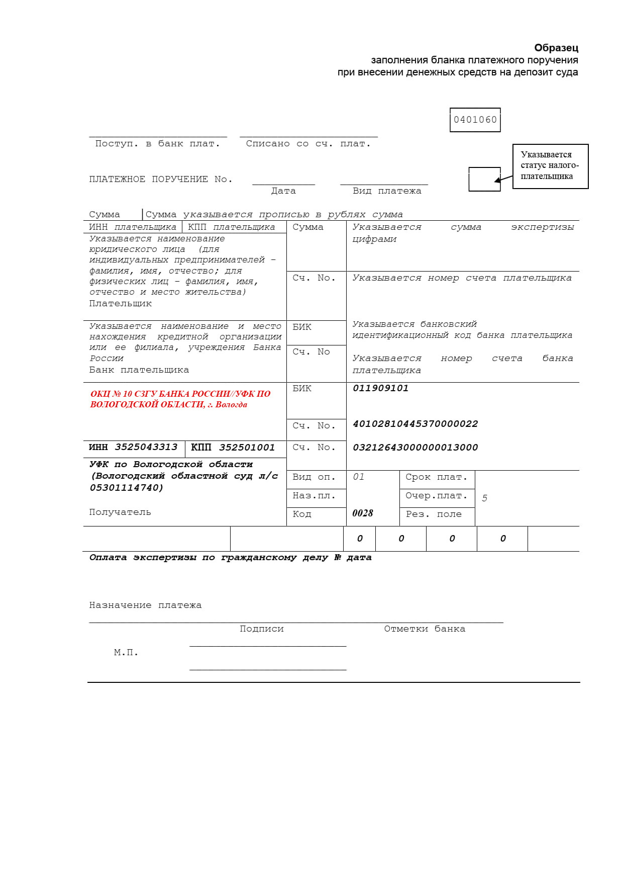 Обратите внимание, что изменяются реквизиты для перечисления денежных средств на депозит Вологодского областного суда.