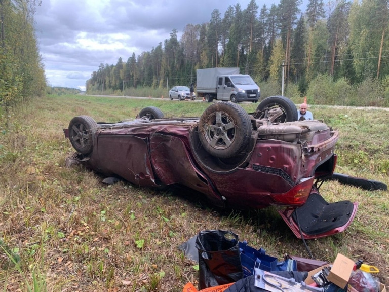 Проезжая по территории Нюксенского муниципального района, мужчина задремал, выехал на встречку, не справился с управлением и съехал в кювет. Иномарка опрокинулась, повалил дым.
