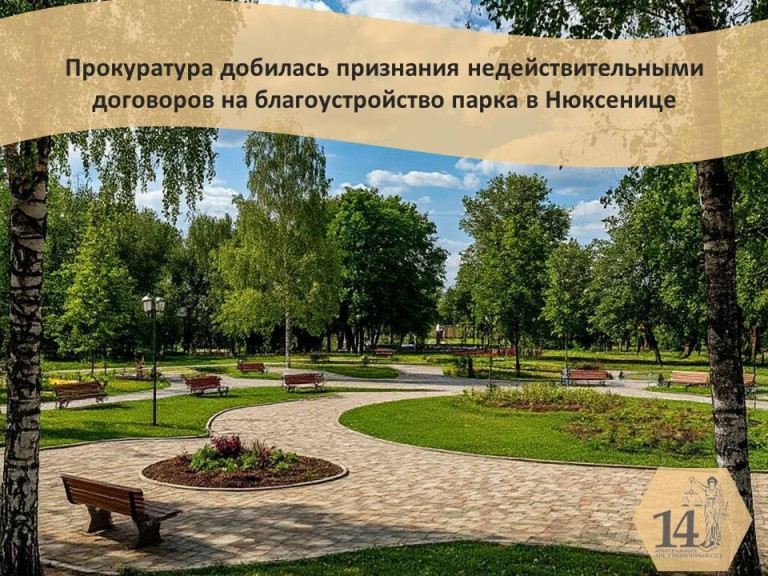 Прокуратура Вологодской области обратилась в арбитражный суд с требованием признать недействительными три договора, заключенные в сентябре 2023 года между администрацией Нюксенского муниципального округа Вологодской области и ООО «Строительная компания Сфера» на общую сумму более 1,5 миллионов рублей. Контракты предусматривали поставку материалов и выполнение работ по благоустройству парка на улице Славянская в селе Нюксеница. Все работы были выполнены обществом и оплачены администрацией.