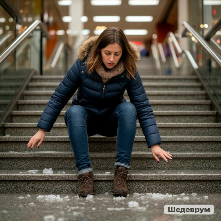Днем 28 января 2023 года 35-летняя жительница г. Череповца спускалась по лестнице на цокольный этаж торгового центра «Купеческий». Неожиданно поскользнувшись, упала.