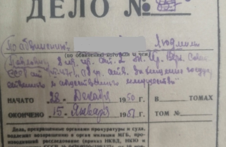 21 февраля 1951 года Народный суд Вытегорского района вынес приговор по ст. 2 Указа Президиума Верховного Совета СССР от 04 июня 1947 года «Об уголовной ответственности за хищение государственного и общественного имущества».