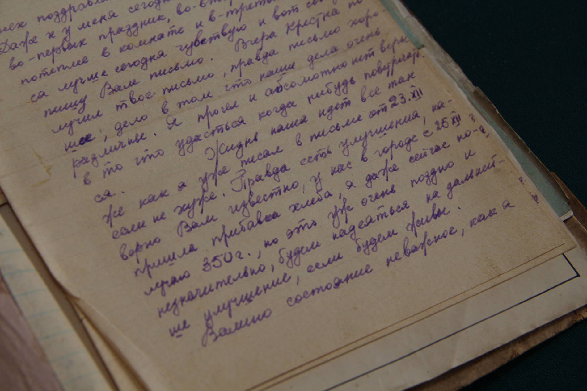 Жизнь наша идет все так же как я уже писал в письме от 23.XII если не хуже. Правда есть улучшения, наверно Вам известно, что у нас в городе с 25 XII пришла прибавка хлеба, я даже сейчас получаю 350 г., но это уж очень поздно и незначительно, будем надеяться на дальнейше улучшение, если будем живы.